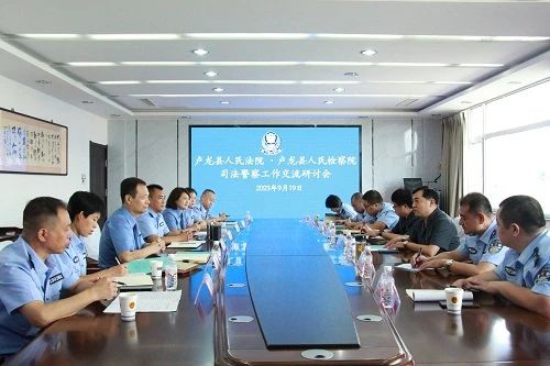 为进一步提升新时代司法警察工作质效,推进交流协作。9月19日,卢龙县人民检察院邀请卢龙县人民法院共同召开司法警察工作交流研讨会。秦皇岛市中级人民法院司法警察支队支队长刘永明、秦皇岛市人民检察院司法警察支队支队长马利、秦皇岛市人民检察院司法警察支队一级警长耿春萍应邀到会指导,卢龙县法检两长、主管副职等参加交流会。会议由县检察院党组成员、政治部主任单丽主持。