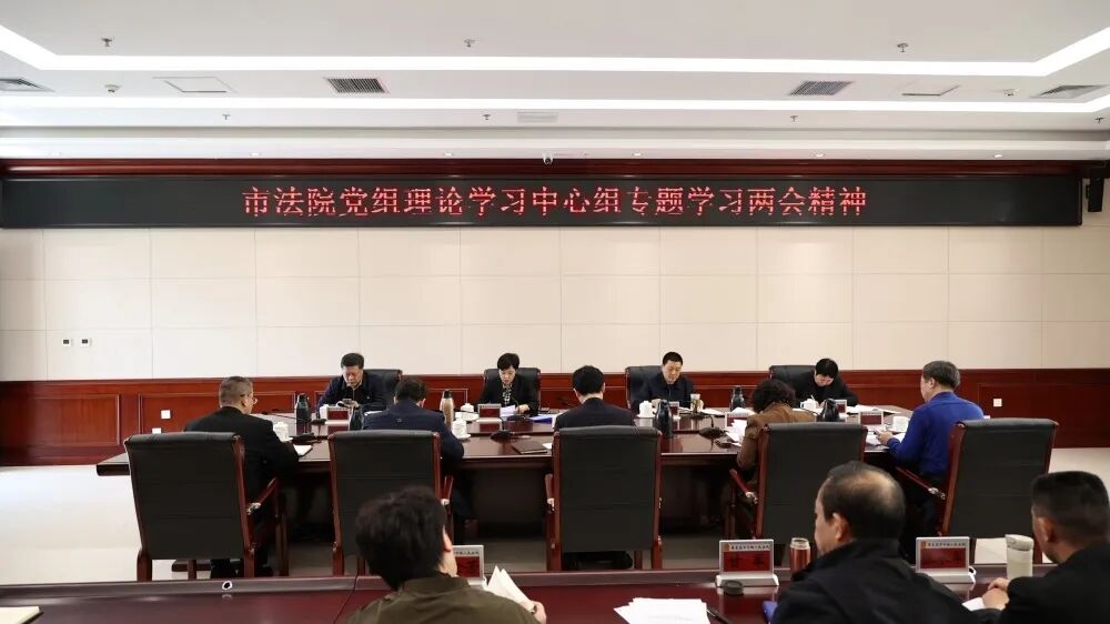4月6日下午,市法院党组理论学习中心组(扩大)召开集中学习会议,专题学习贯彻全国两会精神。党组书记、院长张莉主持会议并讲话。