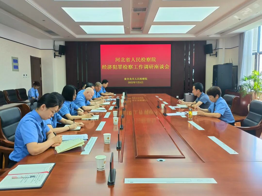 为深入贯彻落实高检院和省检察院主题教育部署要求,进一步推动全省经济犯罪检察工作高质量发展,7月5日下午,河北省人民检察院第四检察部主任刘文海到秦皇岛市人民检察院调研指导经济犯罪检察工作并召开调研座谈会。会议由市院检察委员会专职委员周志宏主持,市院第三检察部全体人员及海港区院、北戴河区院、抚宁区院、开发区院主管检察长和部门负责人参加会议。