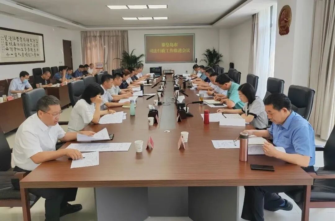 7月10日,秦皇岛市司法局组织召开全市司法行政工作推进会,深入学习贯彻党的二十大精神,全面贯彻落实习近平法治思想,深入学习贯彻习近平总书记视察河北重要指示精神,全面贯彻倪岳峰书记秦皇岛调研关于推动经济社会高质量发展部署要求,认真落实市委、市政府近期重要工作安排和全省司法行政工作推进会议精神,总结工作,分析形势,部署任务。市司法局党组书记、局长刘建明主持会议并讲话,局领导班子成员部署分管领域工作,县、区司法局主要负责人参加会议并汇报县区司法行政工作,市司法局各处室负责人参加会议。